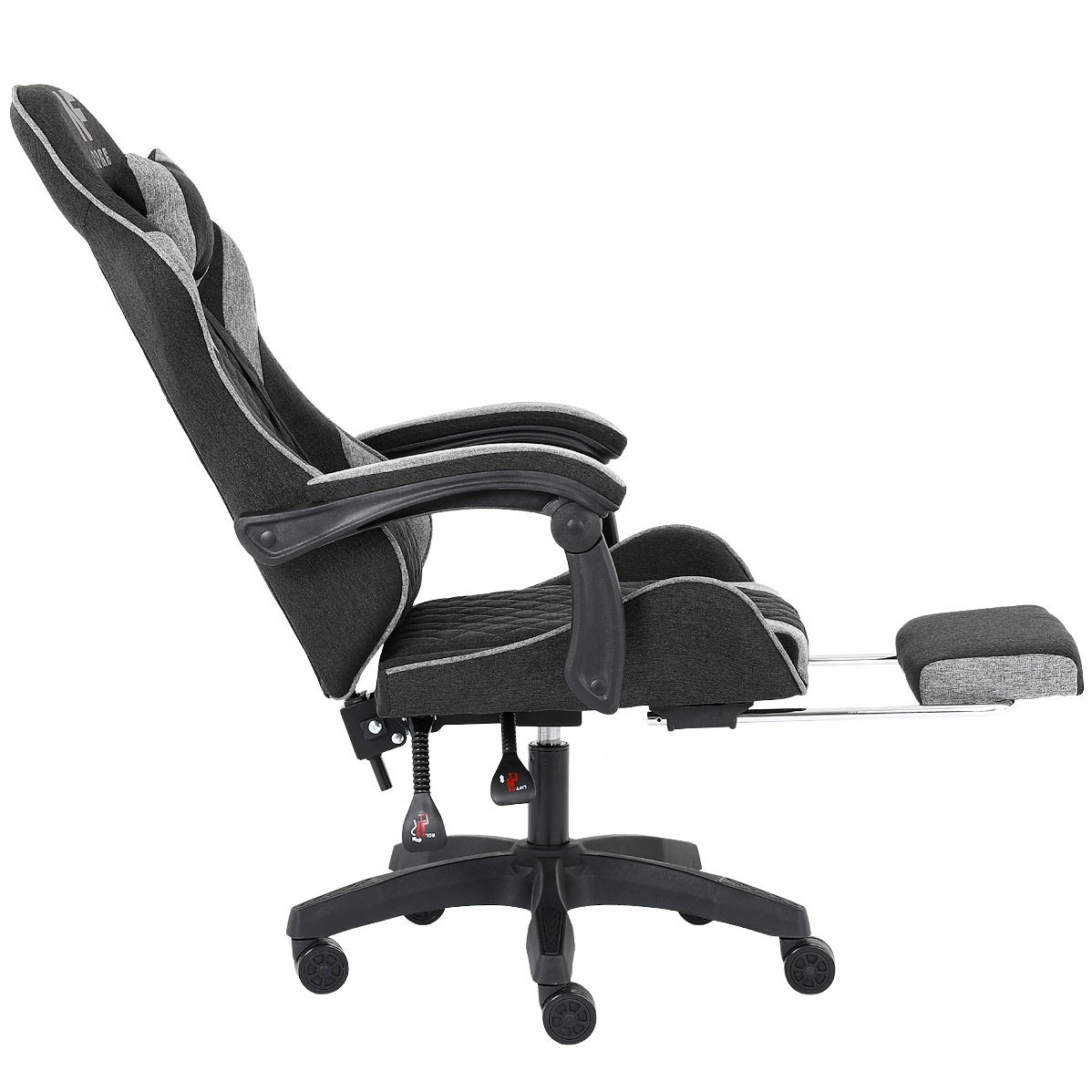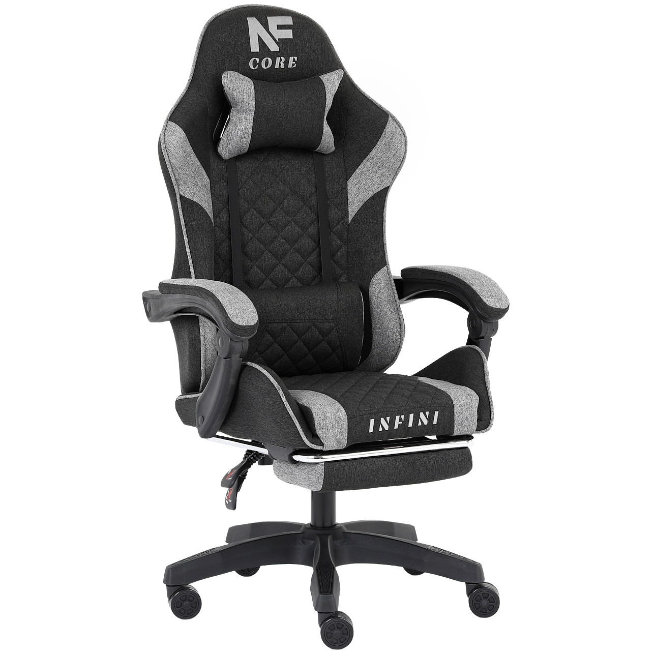 Fotel Gamingowy INFINI Core Dark Gray z tkaniny, wysuwany podnóżek w zestawie