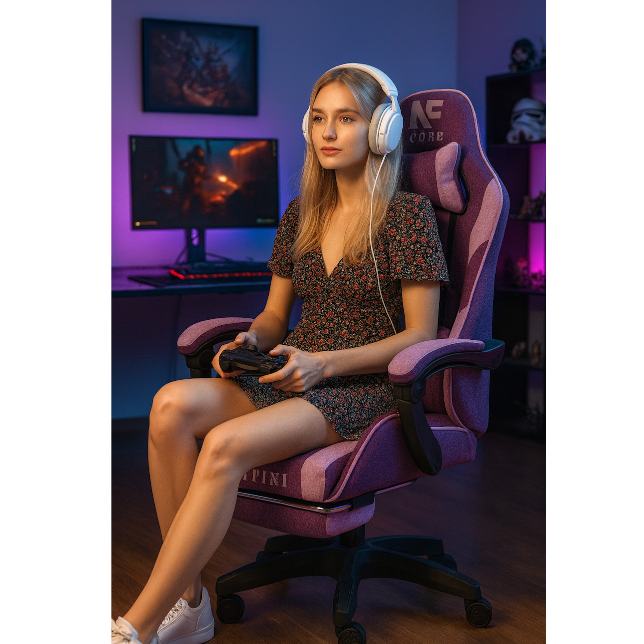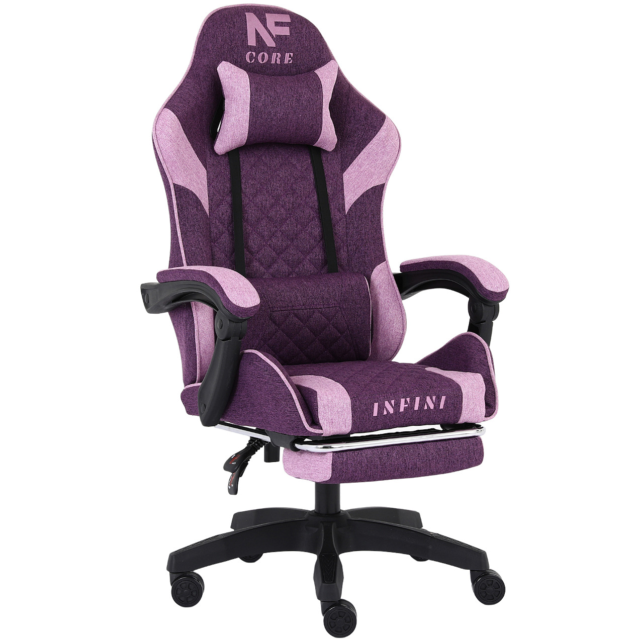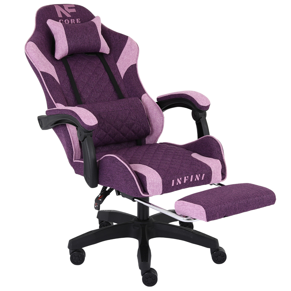 Fotel Gamingowy INFINI Core Purple z tkaniny, podnóżek w zestawie
