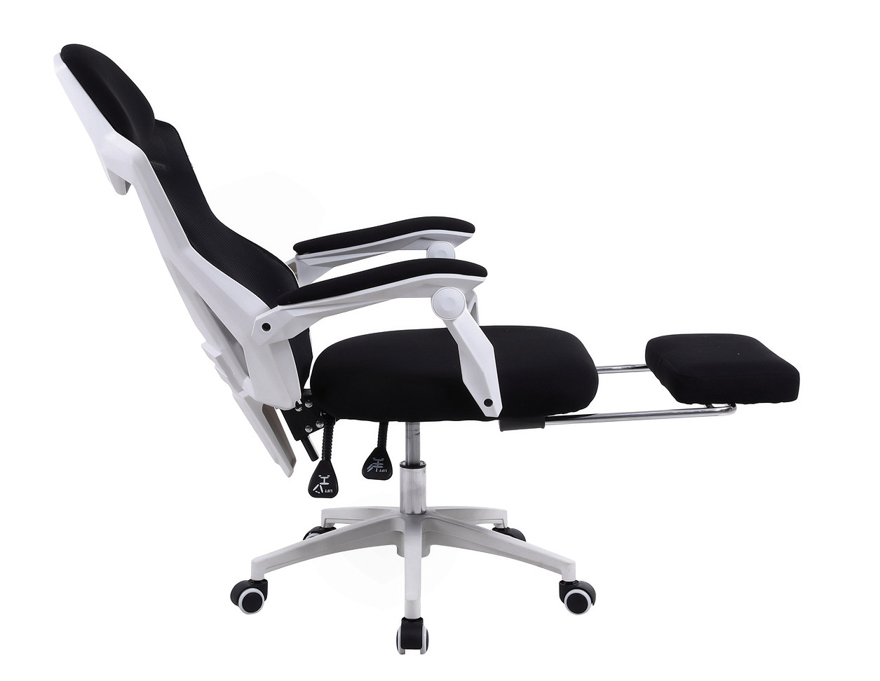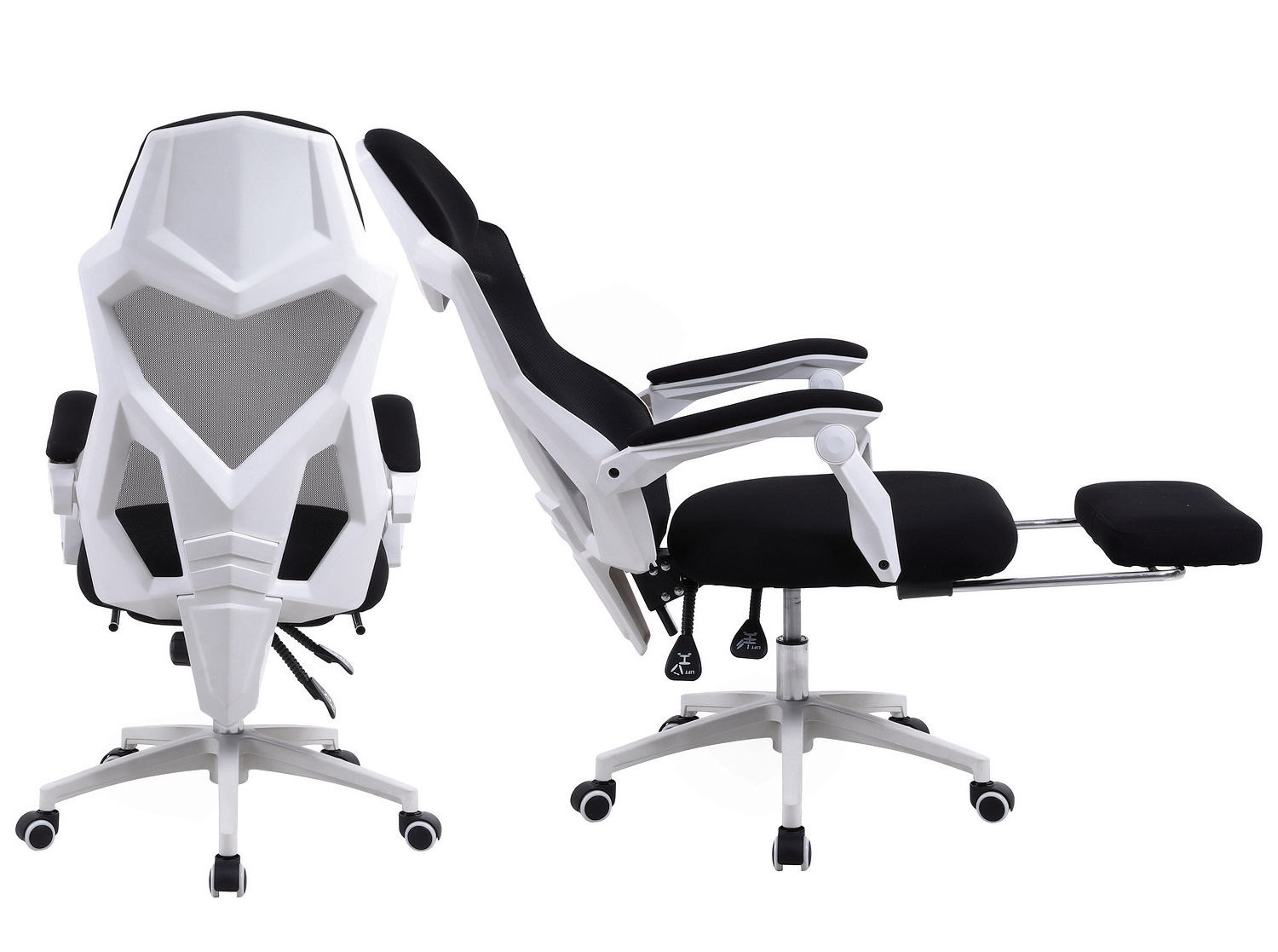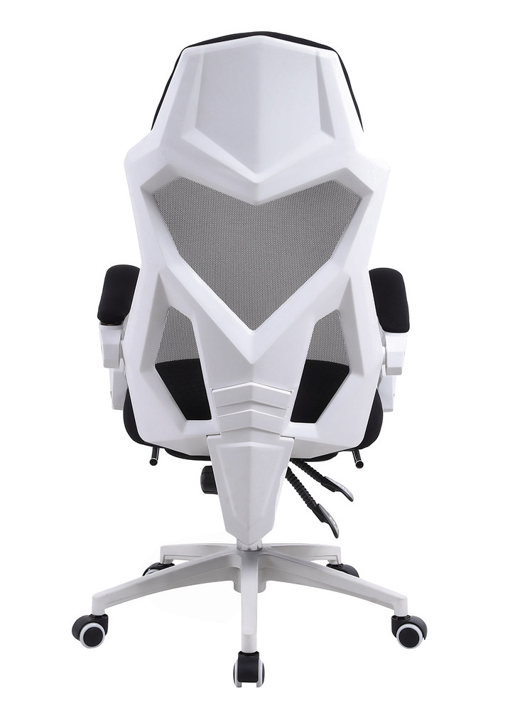 Fotel wyróżnia się nowoczesnym designem, który łączy w sobie czarno-białą kolorystykę z elementami, które podkreślają jego gamingowy charakter. Dedykowane sportowe kółka kauczukowe oraz czarny, tapicerowany podnóżek dodają stylu i funkcjonalności.